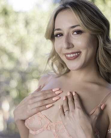 In this intense SheSeducedMe.com feature, Sophia Sweet plays a devoted wife whose dominant husband has arranged a special session. Sophia enters the bedroom already restrained with soft silk ropes around her wrists, dressed in sheer black lingerie. A laptop is positioned on the nightstand, streaming live video chat so her husband can watch every moment from afar.