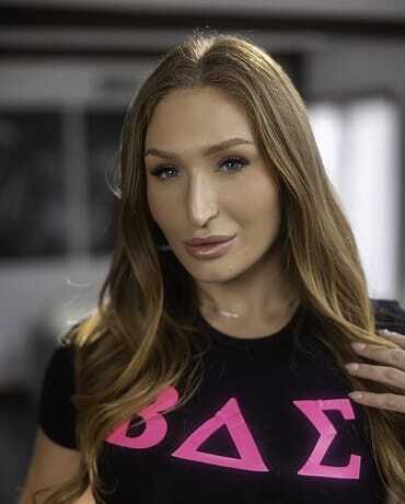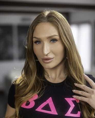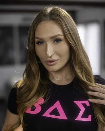 Millie Morgan is so excited for her new stepsister Skylar Snow to join the sorority—Skylar's got the looks but no groove in dancing, risking her spot. Millie, always helpful, jumps in to teach her the moves so she can stay. Millie Morgan is a slim 5'8"" beauty with natural 34B-26-36 (or 32A-24-34) measurements, perky natural tits, green/blue/gray eyes, and a toned, athletic-slim body that's perfect for seductive teaching sessions.